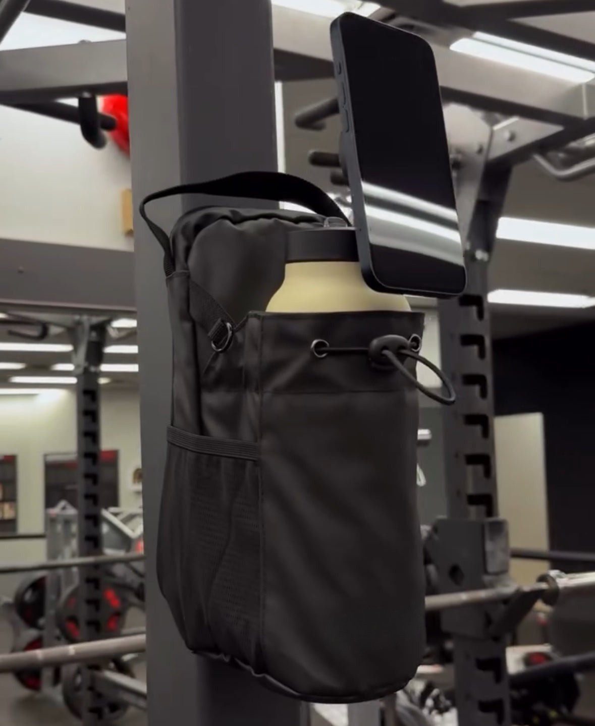 Gracias a su fijación magnética ultrapotente, la bolsa se adhiere instantáneamente a tu rack de levantamiento de pesas y mantiene tu teléfono, llaves y accesorios seguros, visibles y accesibles.